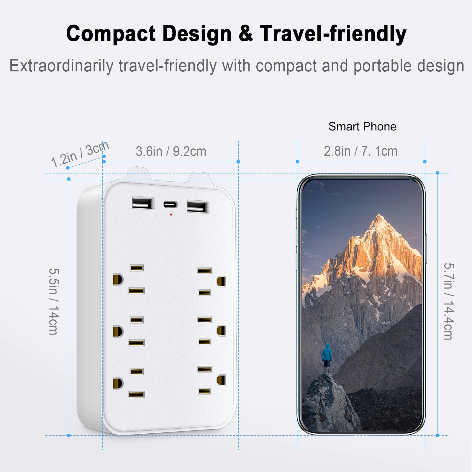 Mini power strip comes compact and portable designed, easy to carry in your bag, suitcase, backpack, or briefcase, and compatible for home, office, dorm room, hotel, travel, entertainment, etc.