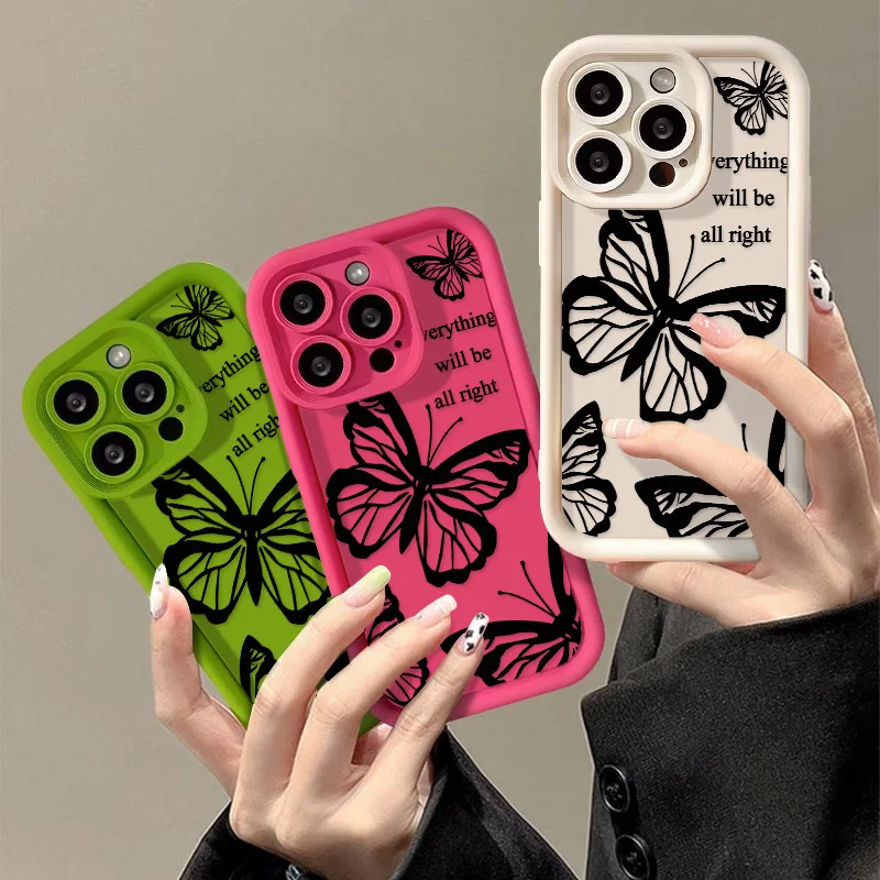 Black Butterfly Silicone Phone Case For iPhone 14 15 Pro Max 11 12 13 Pro Max XR XS X 7 8 15 Plus SE 2020 Candy Color Soft Cover