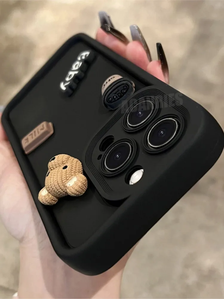 Cute 3D Bear Liquid Silicone Case For Iphone 16 Pro Max 16pro 11 12 13 14 15 Promax 7 8 X Xs Xr Iphone16 Plus Cartoon Soft Cover