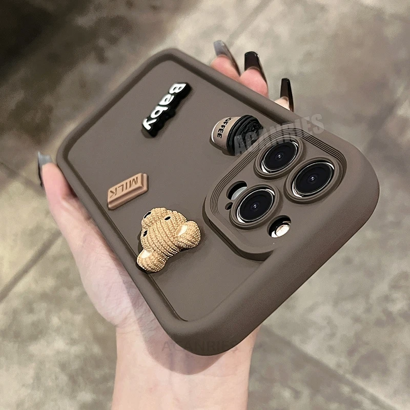 - Condition: Cute 3d Bear Coffee cartoon Liquid Silicone phone case for iphone 16 Pro max 16 plus 16pro 16plus iphone 11 12 13 14 15 pro max plus