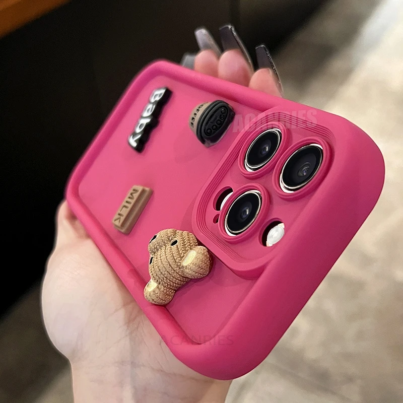 Cute 3D Bear Liquid Silicone Case For Iphone 16 Pro Max 16pro 11 12 13 14 15 Promax 7 8 X Xs Xr Iphone16 Plus Cartoon Soft Cover