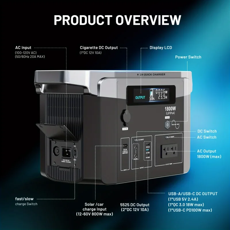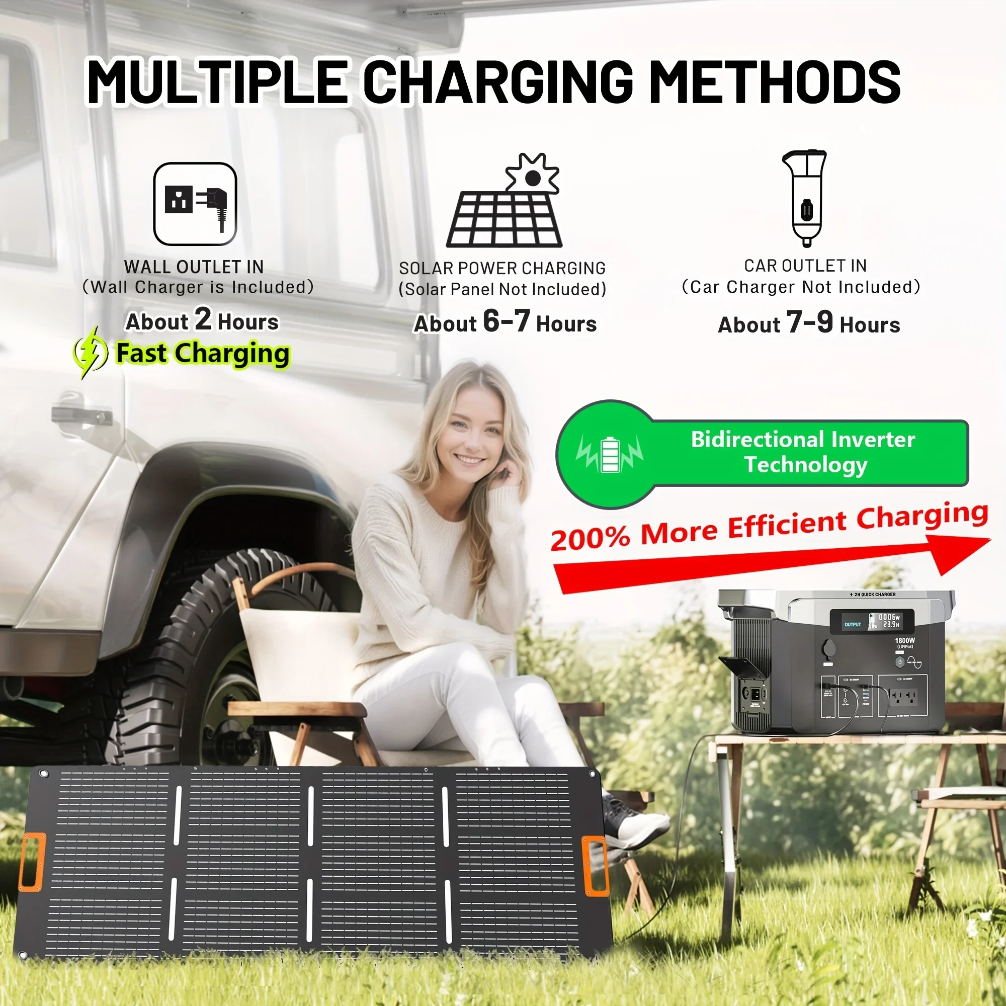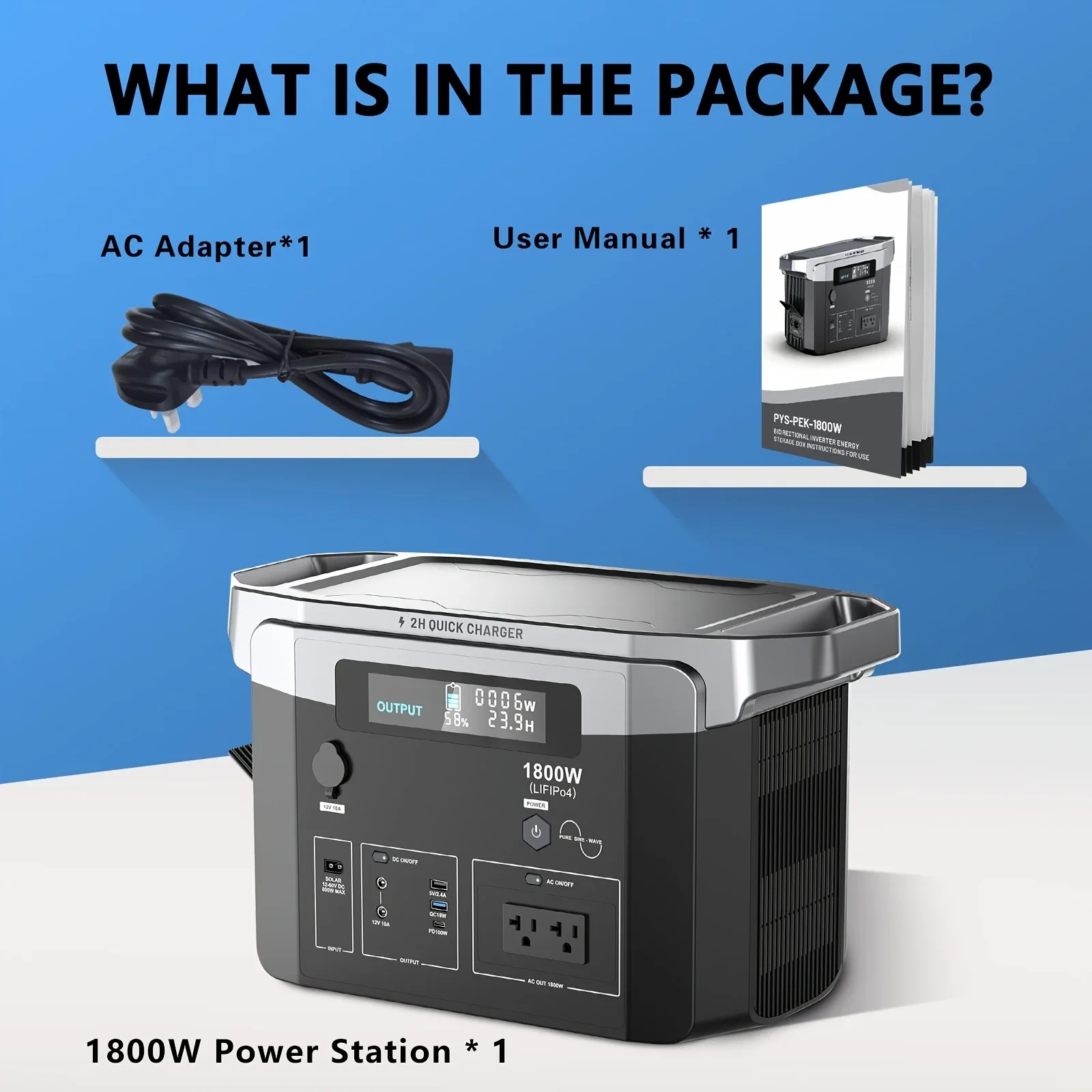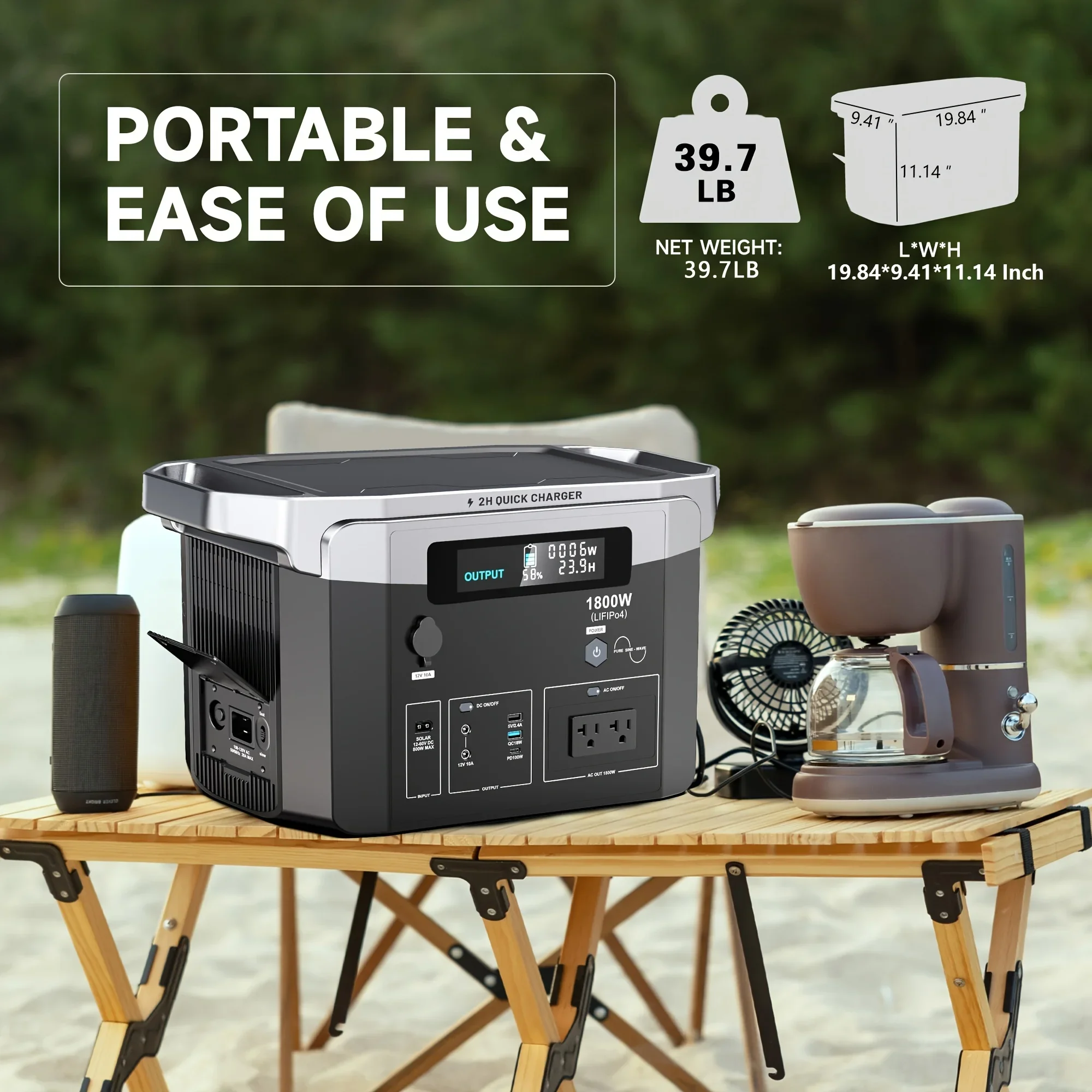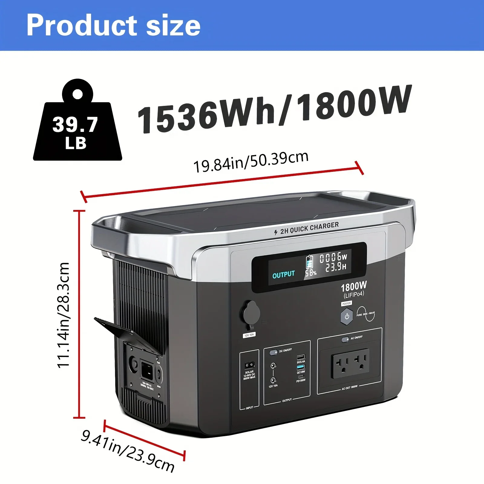 Portable Power Station 1800W, LiFePO4 Battery/ 2 Hour Fast Charging, AC Outlets And 1536Wh Capacity Solar Generator